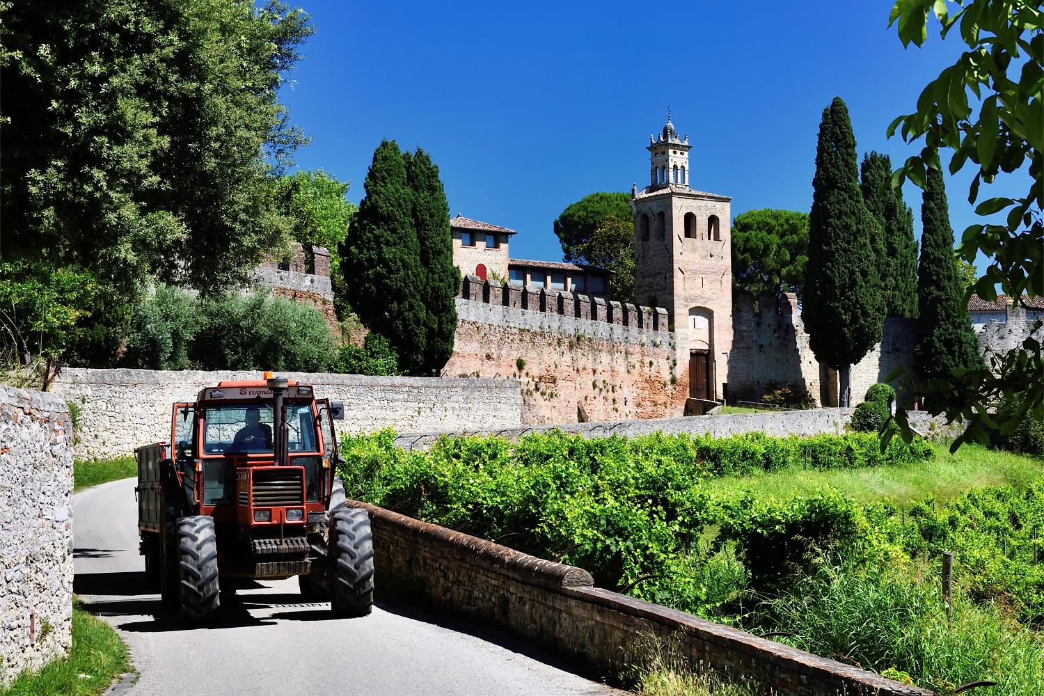 Il percorso illustrato parte dall’abitato di Susegana, dove si può parcheggiare, sale verso il castello di San Salvatore e continua verso il Castello di Collalto. La viabilità è limitata ai residenti. Le foto sono state scattate in una giornata molto soleggiata per dare risalto al verde dei vigneti. Sotto il profilo fotografico c’è stato un interessante confronto tra due sensori APS-C , con un lieve vantaggio finale per la mirror-less Fujifilm XT-20.