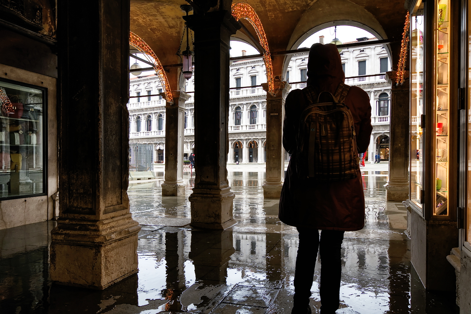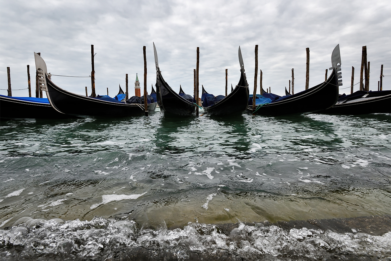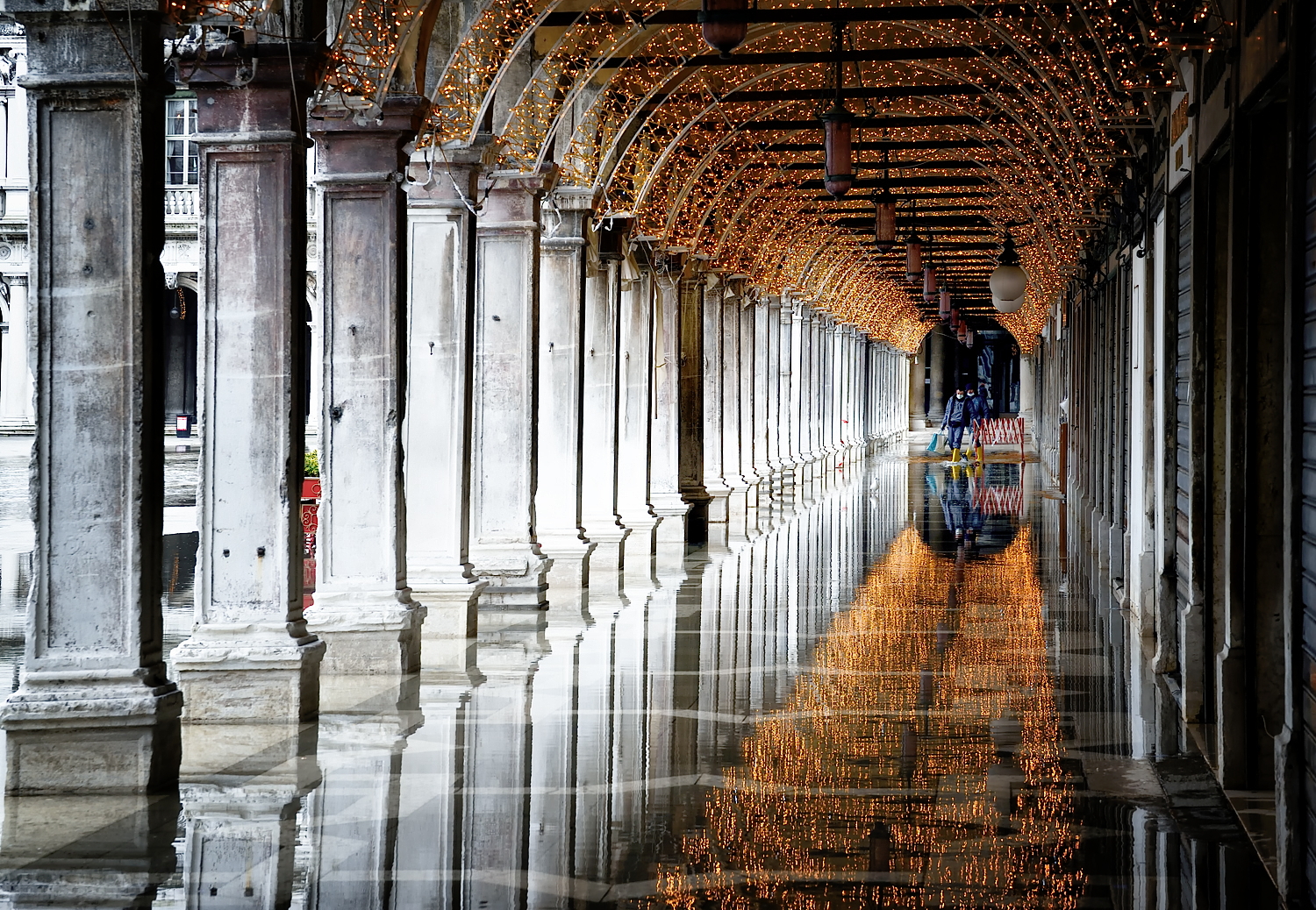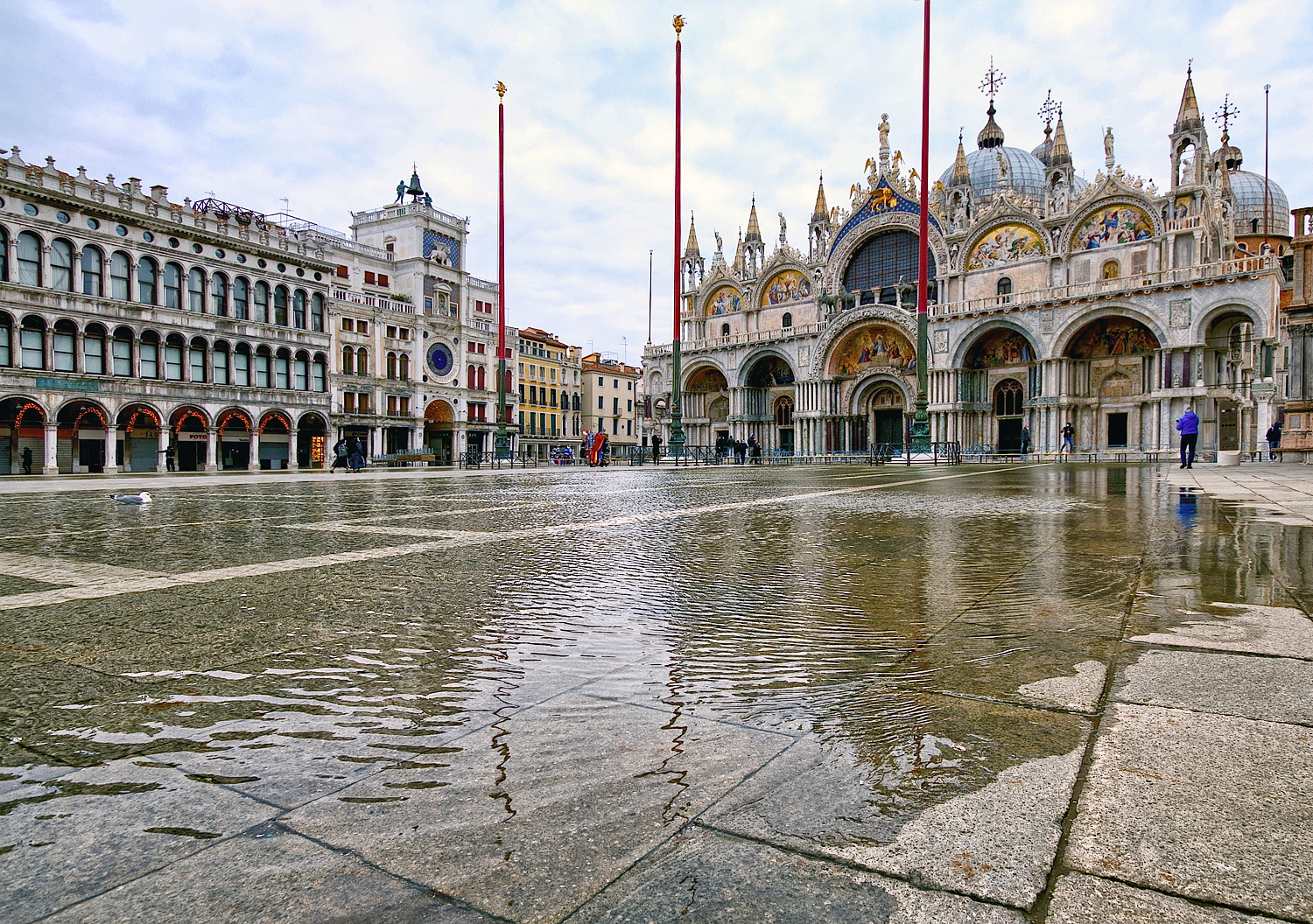 La leggera acqua alta, dovuta ad una normale marea, non fa che da significante alla città. Veneziani, l’augurio è di ripartire tutti il prima possibile.