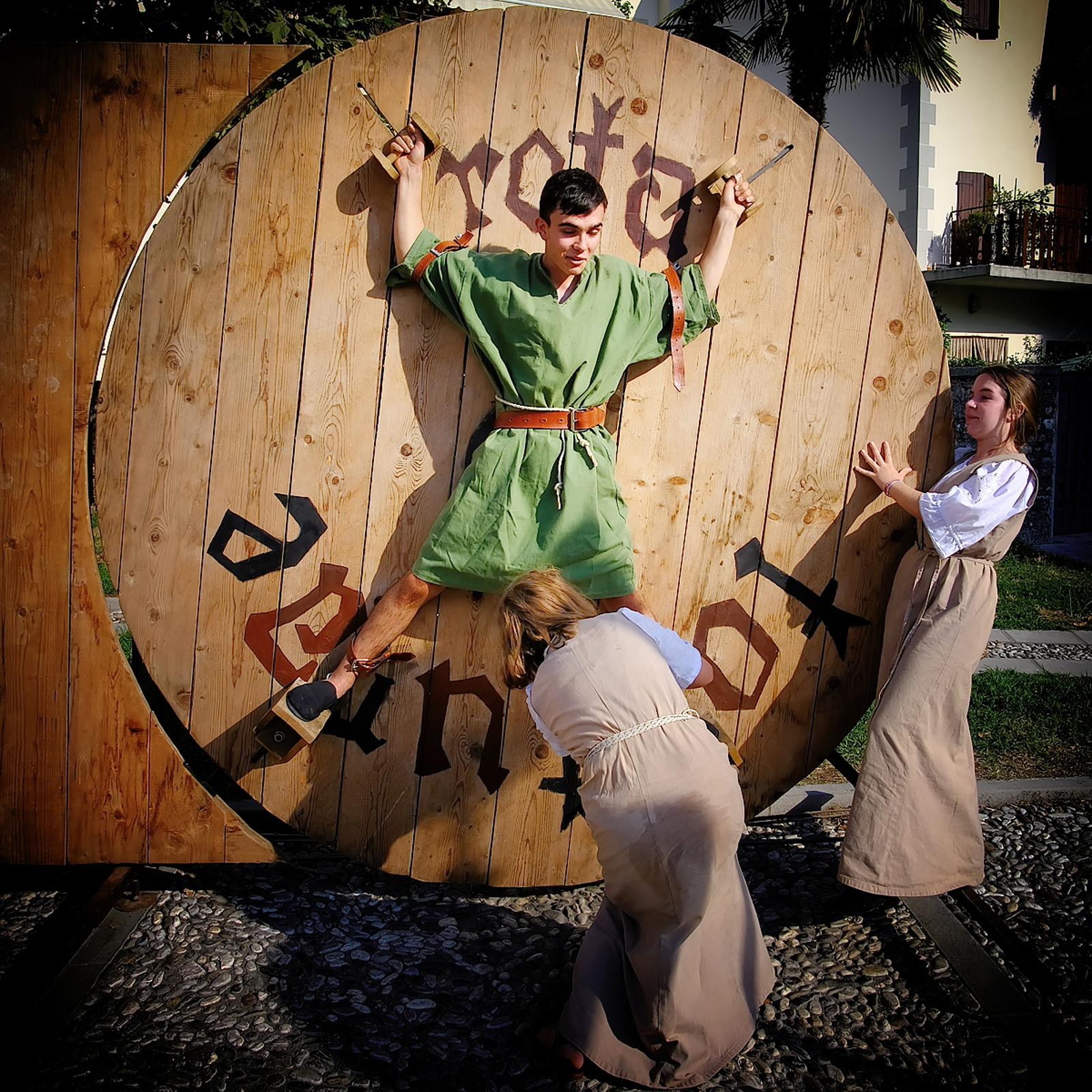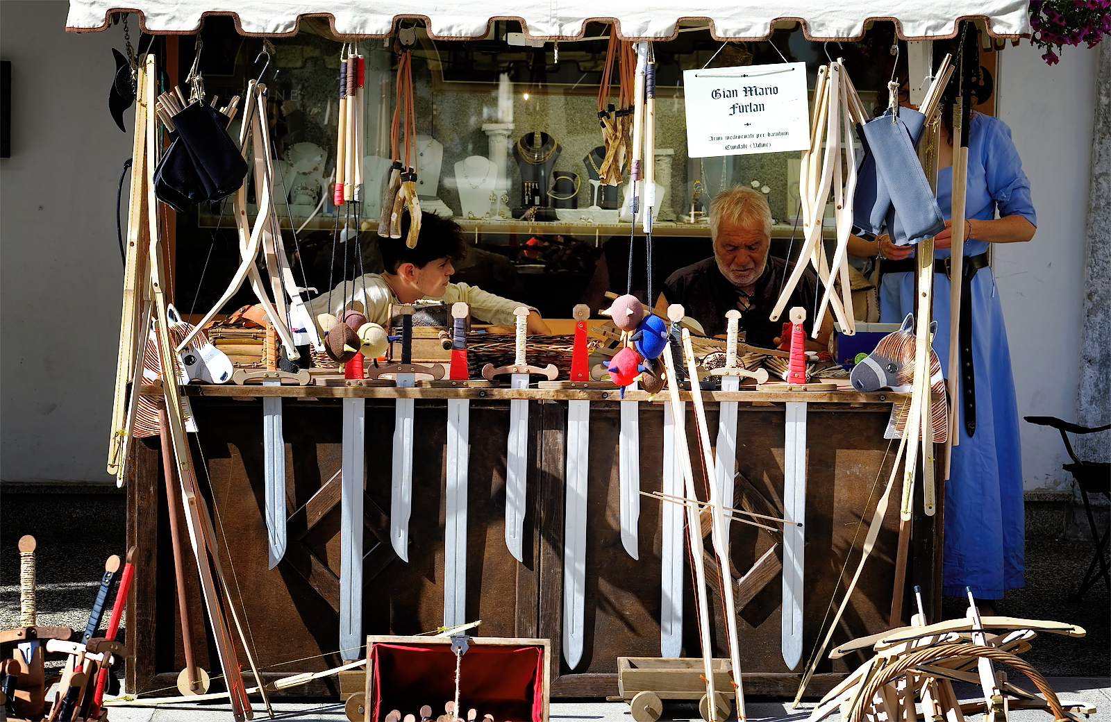 Figuranti, giullari, falconieri e soldati di ventura, venditori con bancarelle in stile medioevale animano la città per ben tre giorni, oltre alle immancabili macchine da tortura (inventate dagli Scout del luogo ;-)).