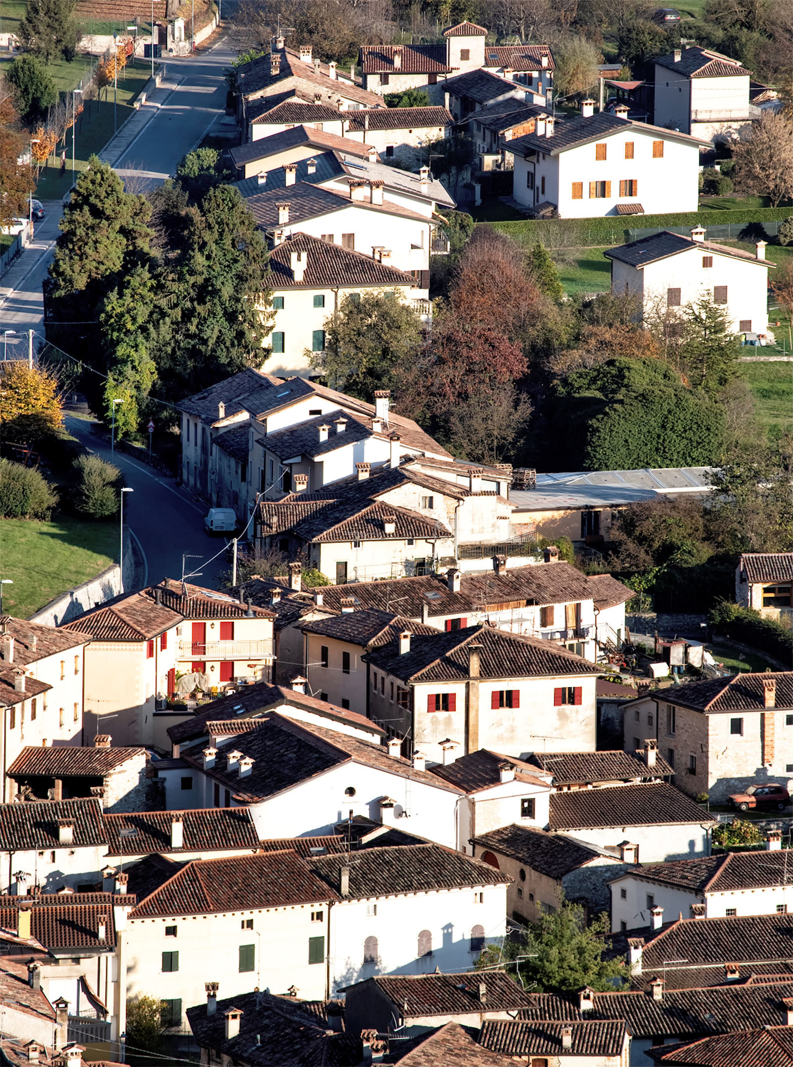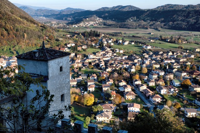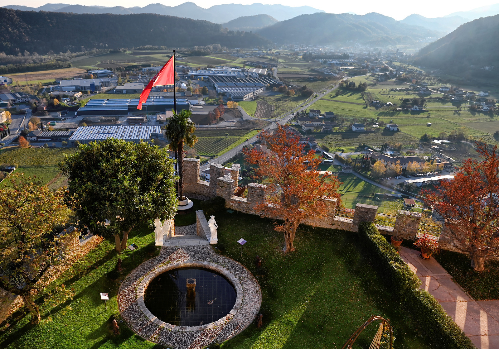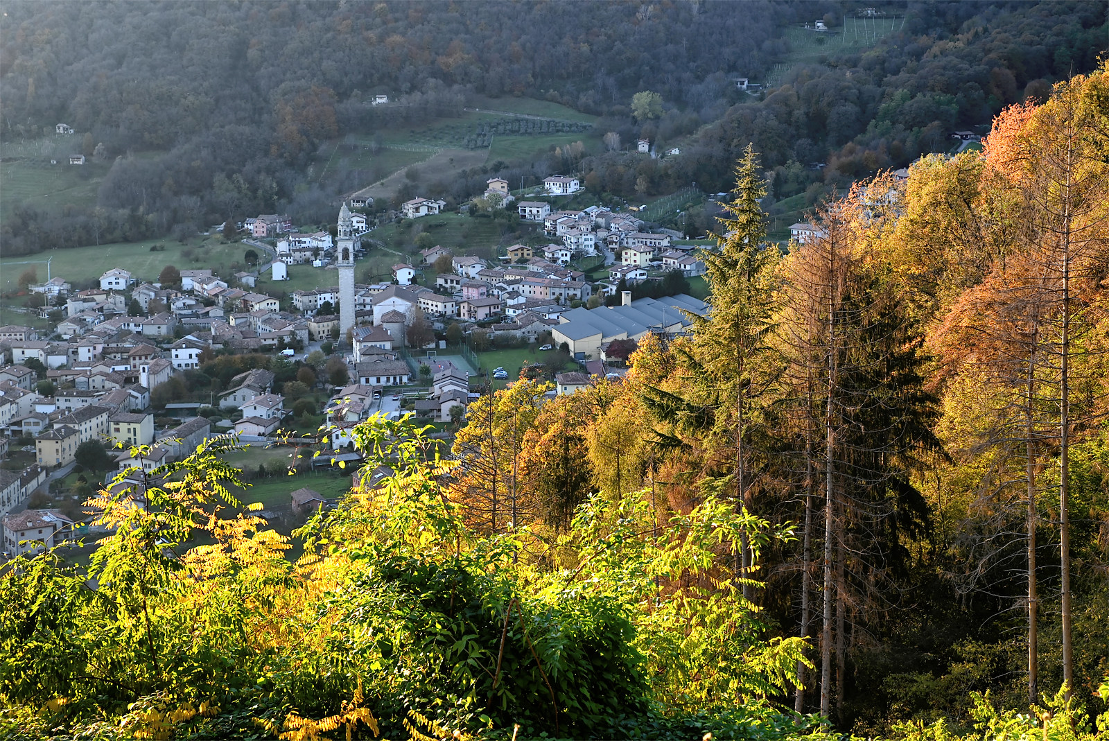 Sorge alle pendici del monte Castello, da cui domina i borghi di Valmareno e di Cison.