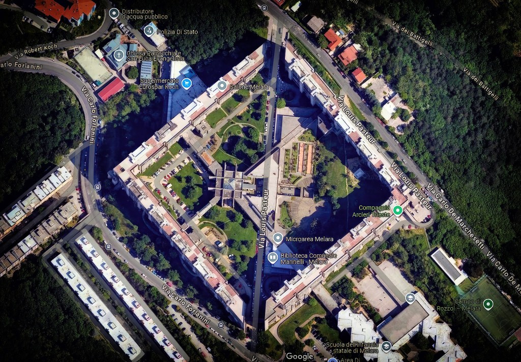 Rozzol Melara è un quartiere di Trieste, conosciuto per ospitare il complesso residenziale popolare ATER comunemente chiamato “Il quadrilatero” di Melara. Il “quadrilatero” di Melara è stato progettato da un nutrito gruppo di professionisti triestini (29) e costruito tra il 1969 e il 1982 facendo proprie le teorie socio architettoniche di Le Corbusier.