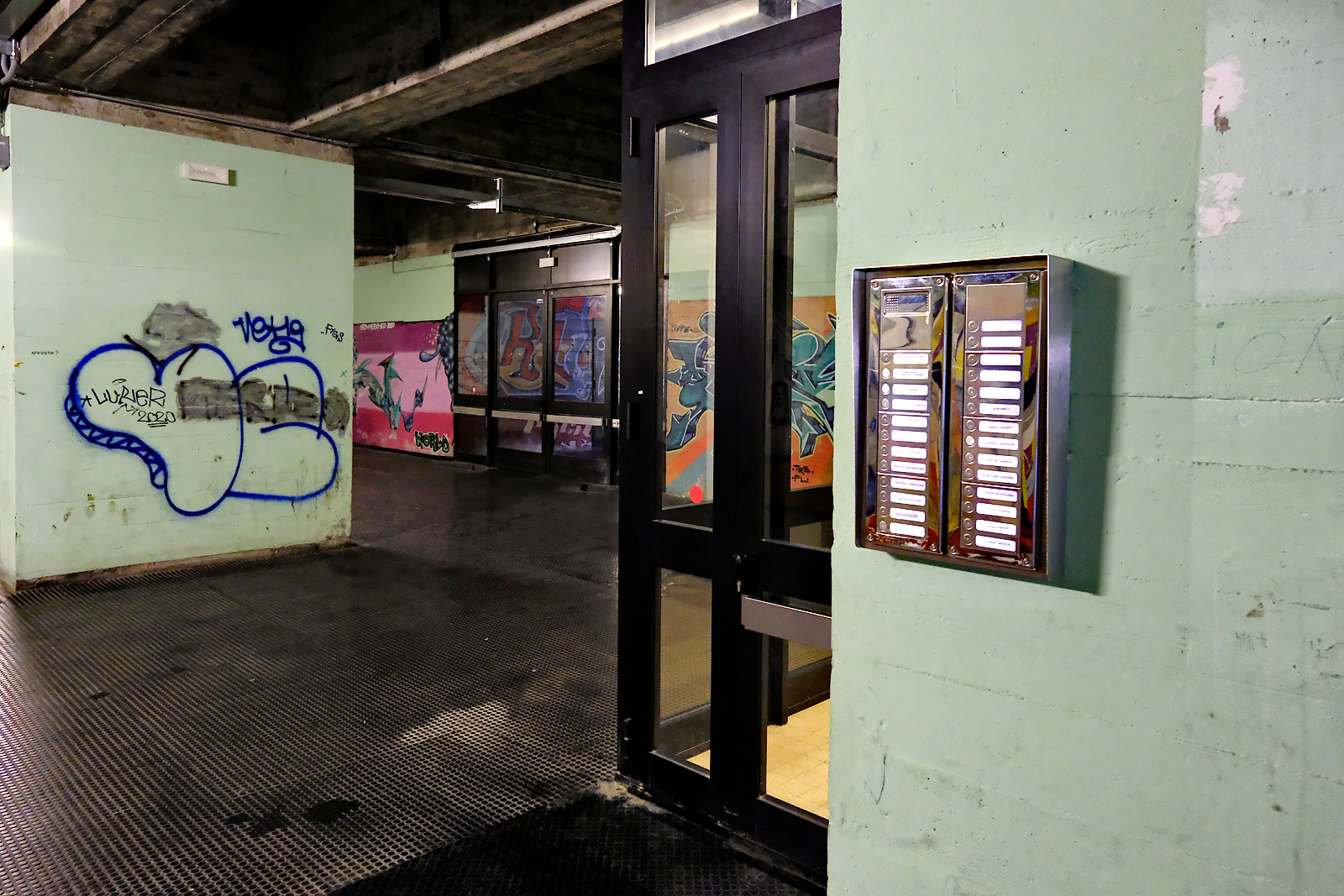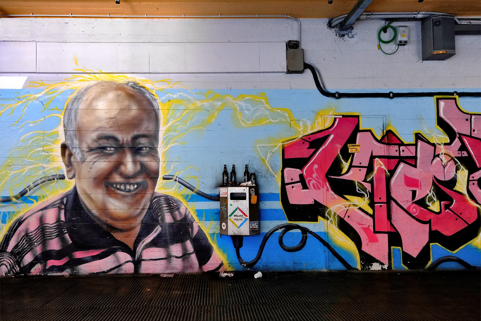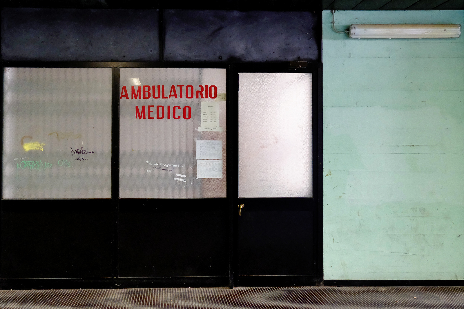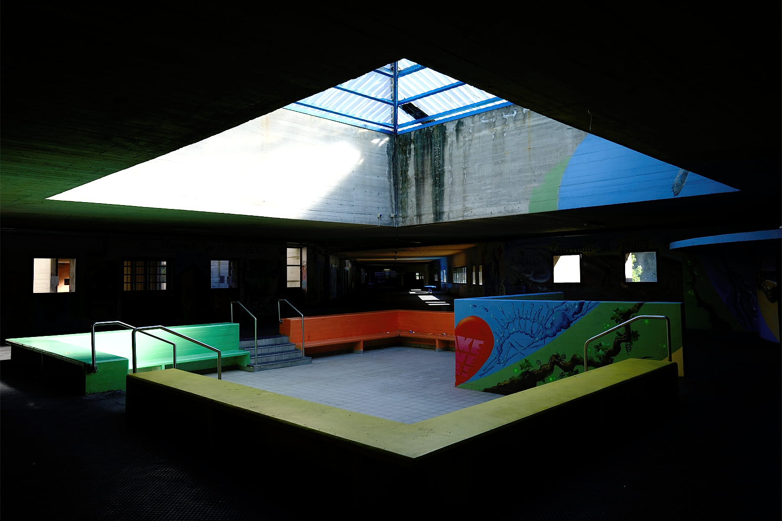 I progettisti si sono dimenticati di cosa significa camminare per centinaia di metri in corridoi semibui, illuminati da squarci di sole, poi dipinti da graffiti e murales.