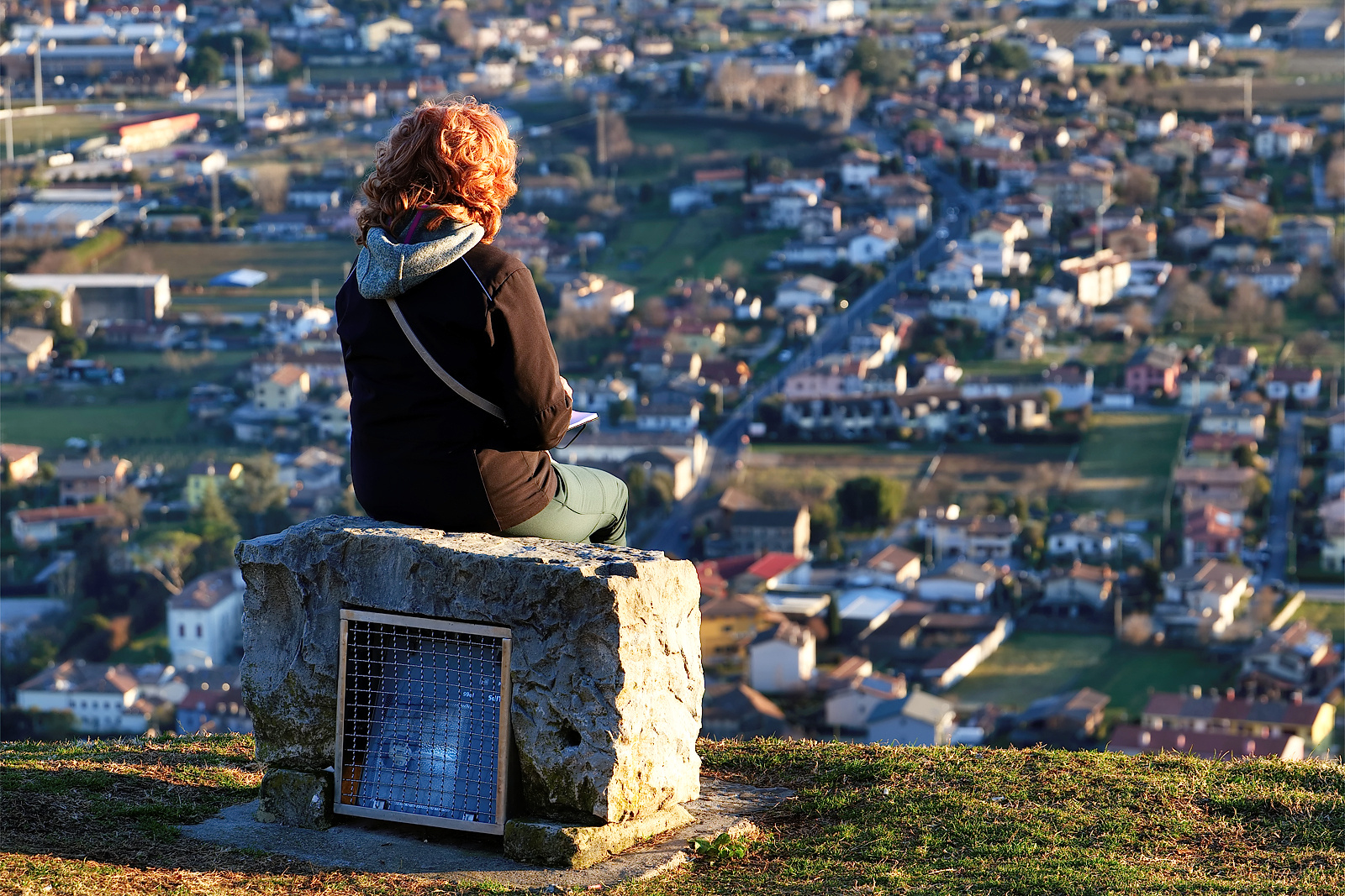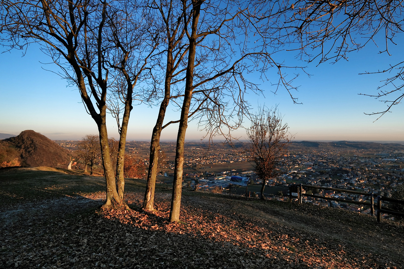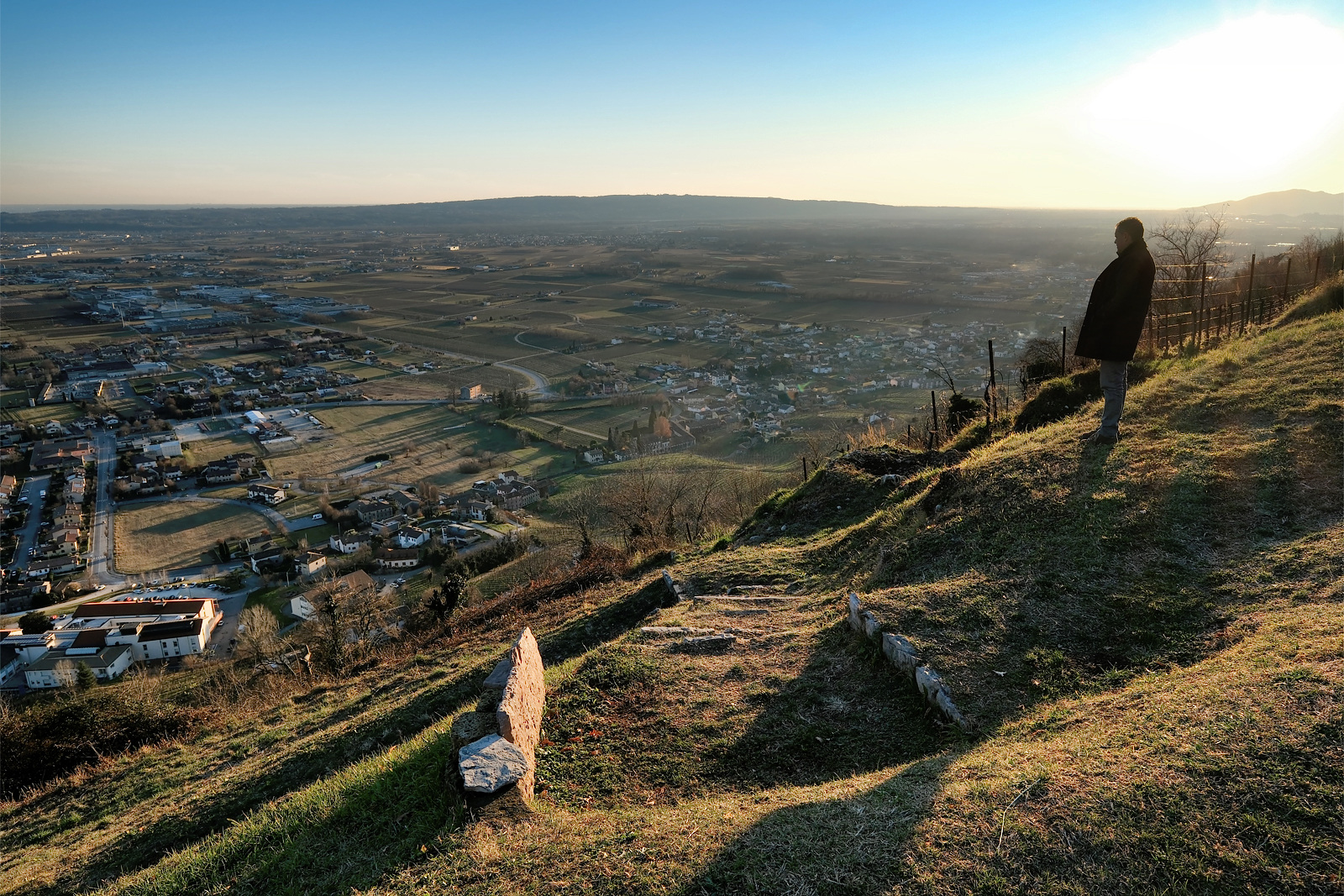 L’altura terrazzata su cui si erge l’eremo consente un’ampia veduta su tutto il Quartier del Piave e sui colli circostanti (si distinguono ad esempio Rua di Feletto e Collalto di Susegana, oltre al lungo profilo del Montello).