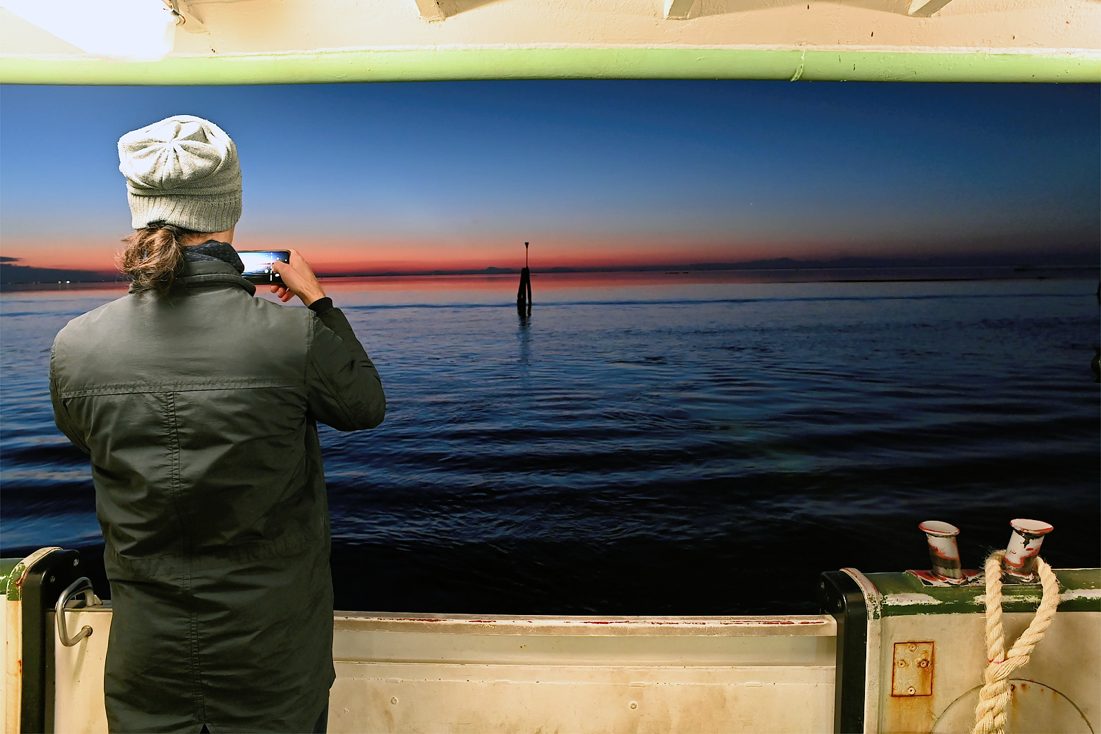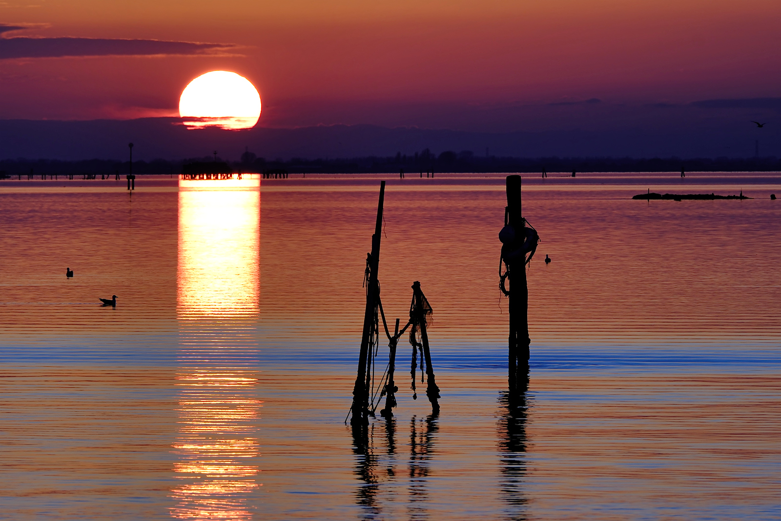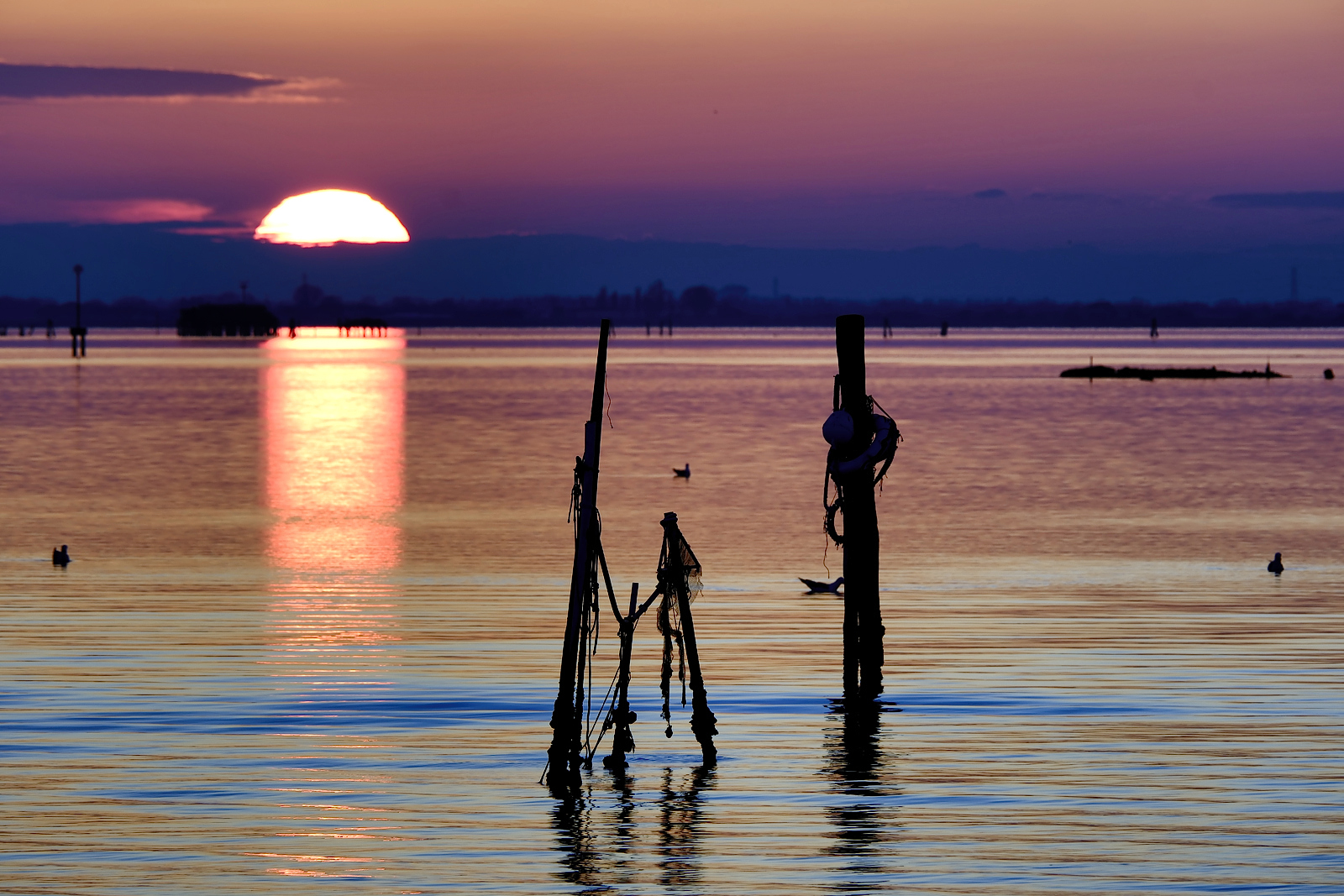 Il tramonto d’inverno, nelle giornate giuste, è un momento di grande spettacolarità dovuto a due fattori: il sole che tramonta dietro l’acqua, inusuale per noi che abbiamo il mare ad est, e il silenzio che regna nell’isola interrotto solo dalle chiacchiere di chi assiste all’evento naturale.