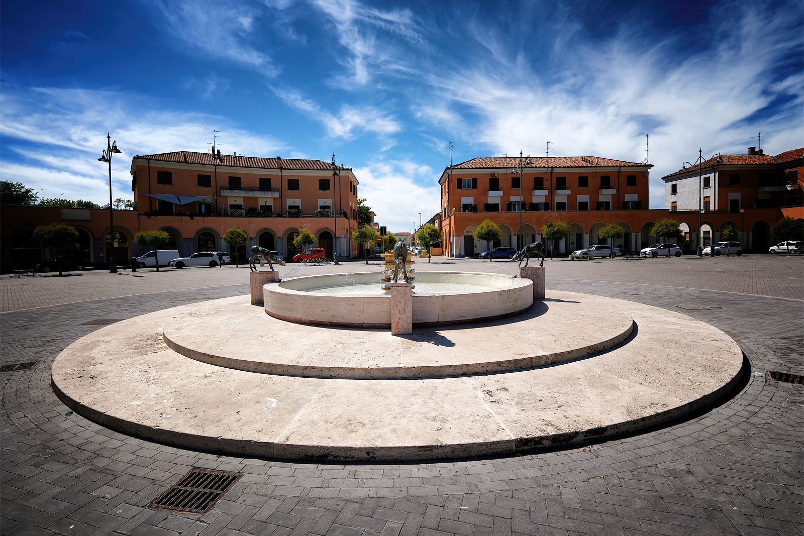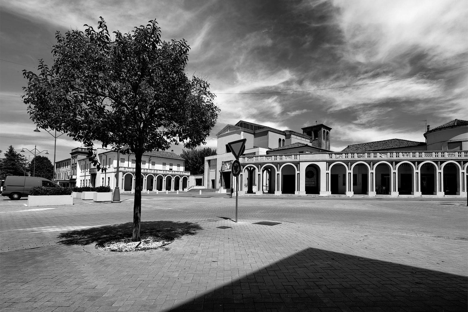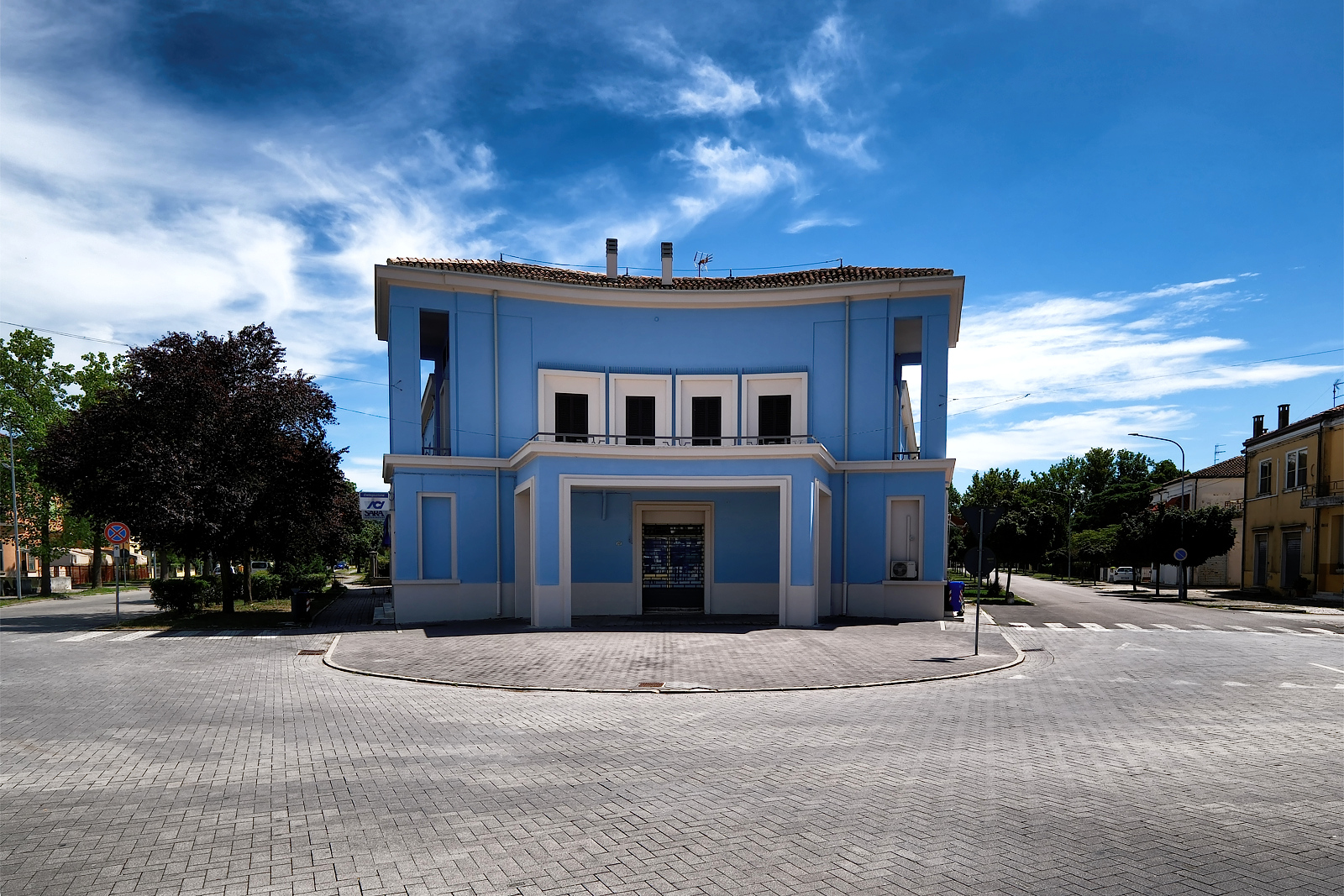 Tresigallo è detta “città metafisica” per il suo aspetto e la sua storia che ricordano le atmosfere delle opere del pittore metafisico Giorgio De Chirico. La cittadina, situata a 25 km da Ferrara, ricostruita in stile razionalista negli anni ’30, presenta edifici geometrici, rigorosi, ampie piazze e vie con un’apparire urbano estraneo al contesto circostante.