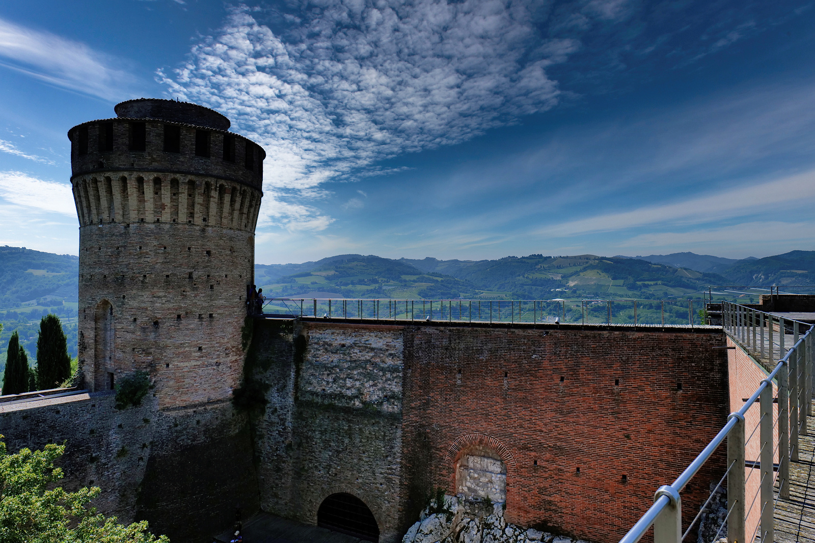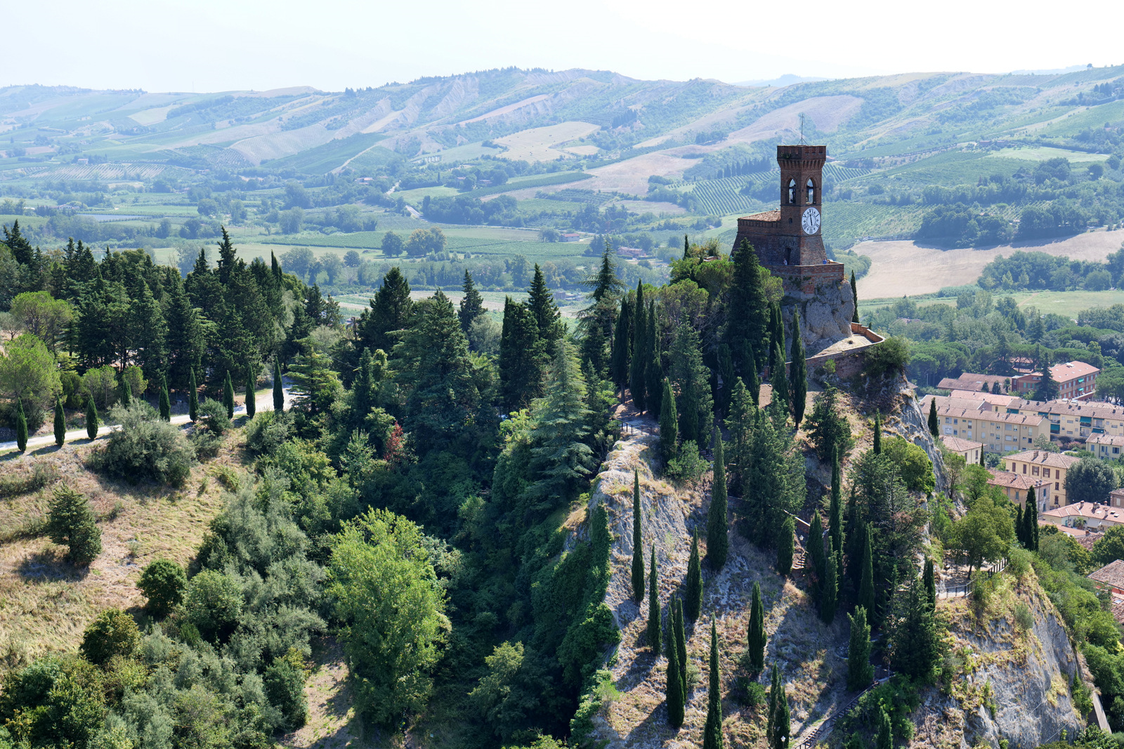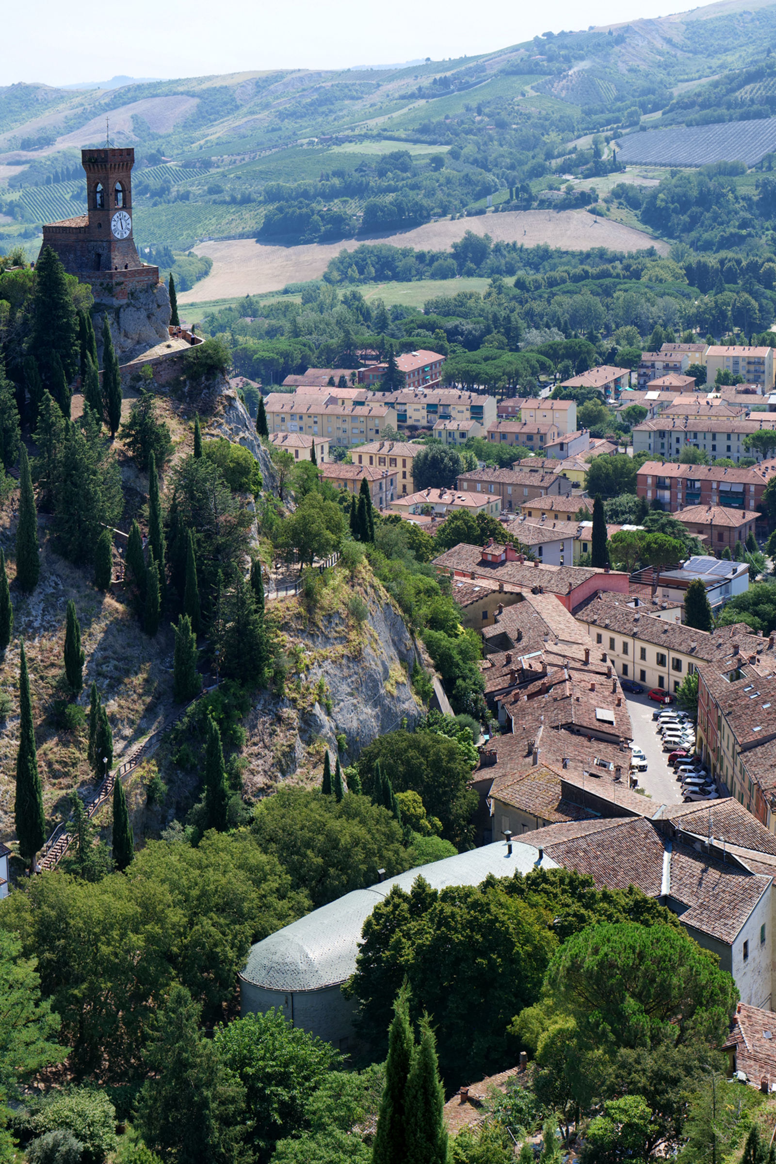 Brisighella è caratterizzato da tre cime rocciose (i “Tre Colli”), su cui poggiano, rispettivamente, la Rocca Manfrediana (XIV secolo), il santuario del Monticino (XVIII secolo) e la torre detta dell’Orologio, ricostruita nell’Ottocento sulle rovine di un preesistente insediamento difensivo del XII secolo.