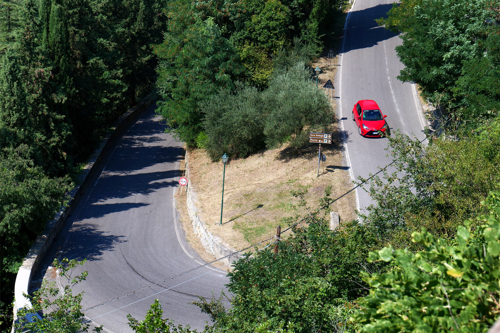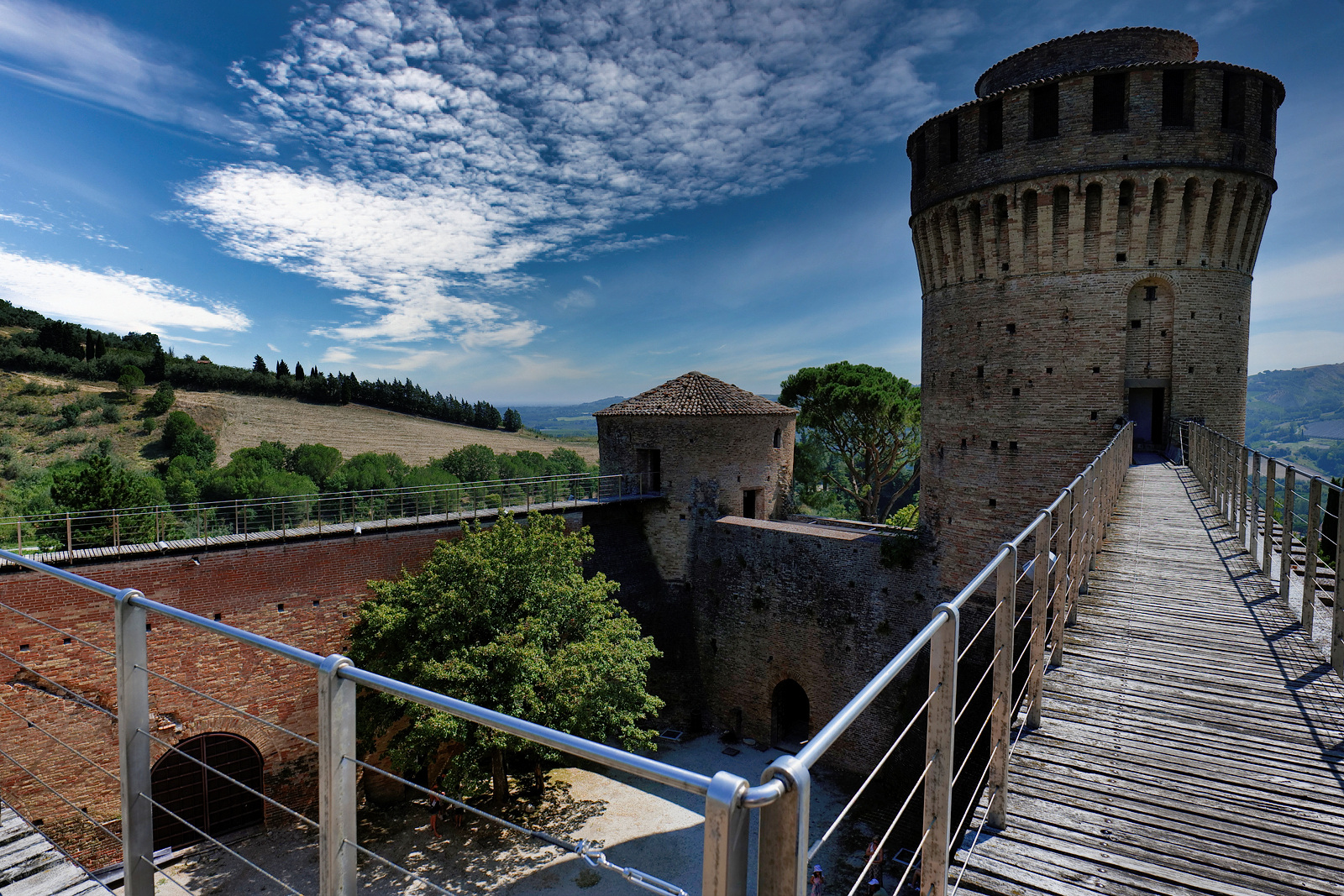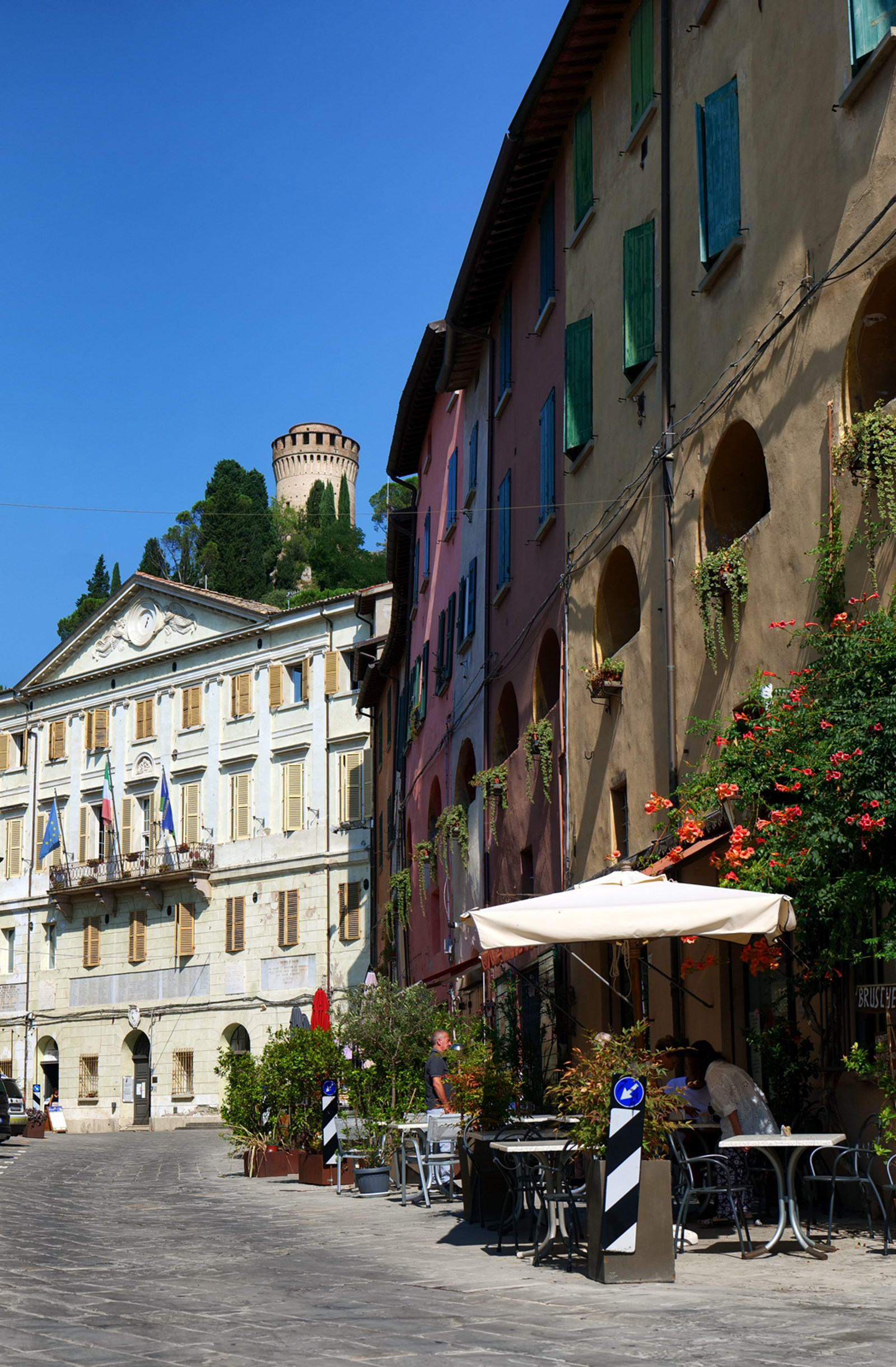 Brisighella è caratterizzato da tre cime rocciose (i “Tre Colli”), su cui poggiano, rispettivamente, la Rocca Manfrediana (XIV secolo), il santuario del Monticino (XVIII secolo) e la torre detta dell’Orologio, ricostruita nell’Ottocento sulle rovine di un preesistente insediamento difensivo del XII secolo.