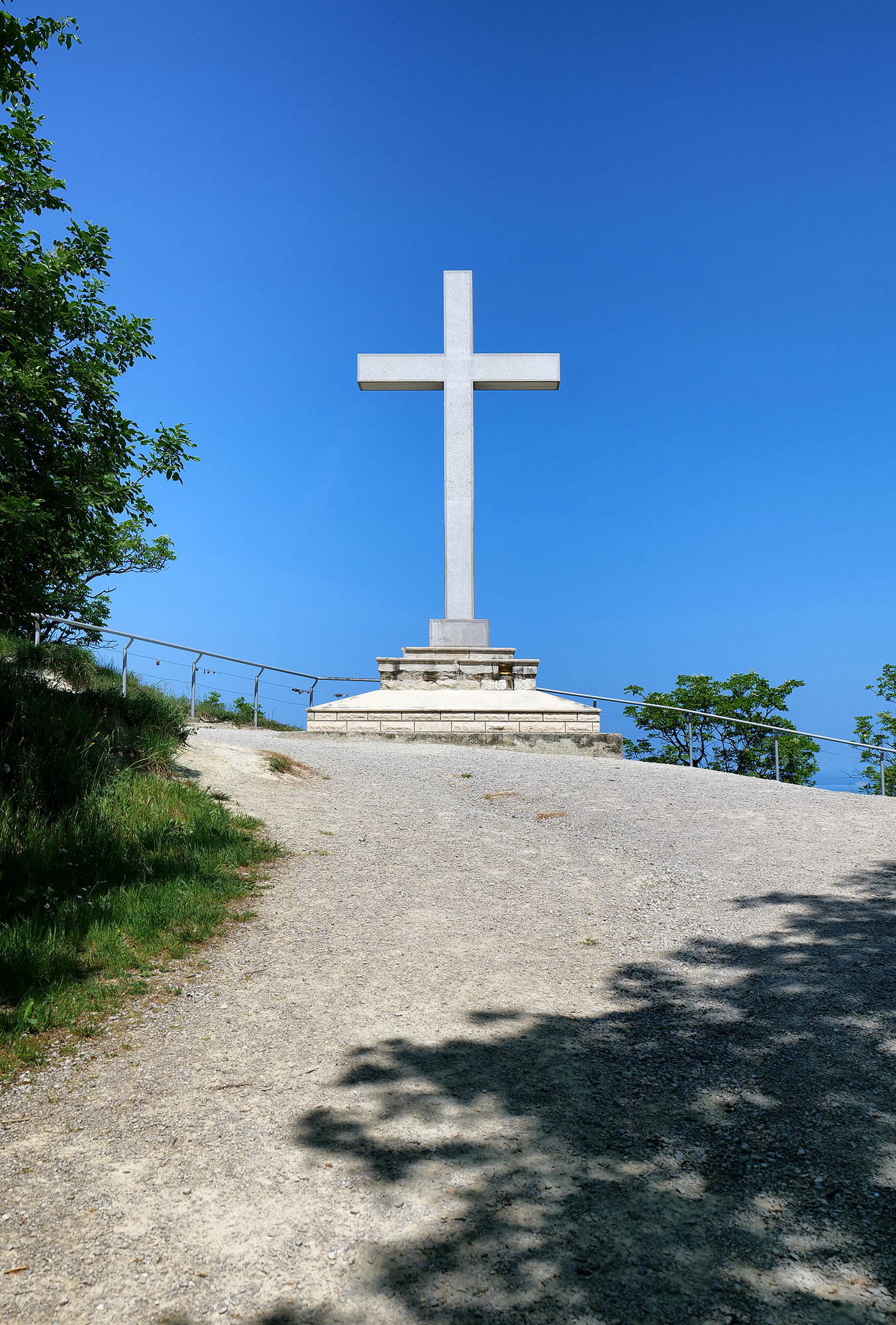 La penisola, fra i comuni di Isola e Pirano, offre una vista di terra e mare spettacolare dovuta ad una falesia molto alta, rara nel paesaggio dell’alto Adriatico. La croce di croce di pietra ha sempre costituito da riferimento per i marinai sulla prossimità della terraferma e un indicatore dell’ubicazione del Santuario di Santa Maria della Visione, situato poco dentro la falesia.