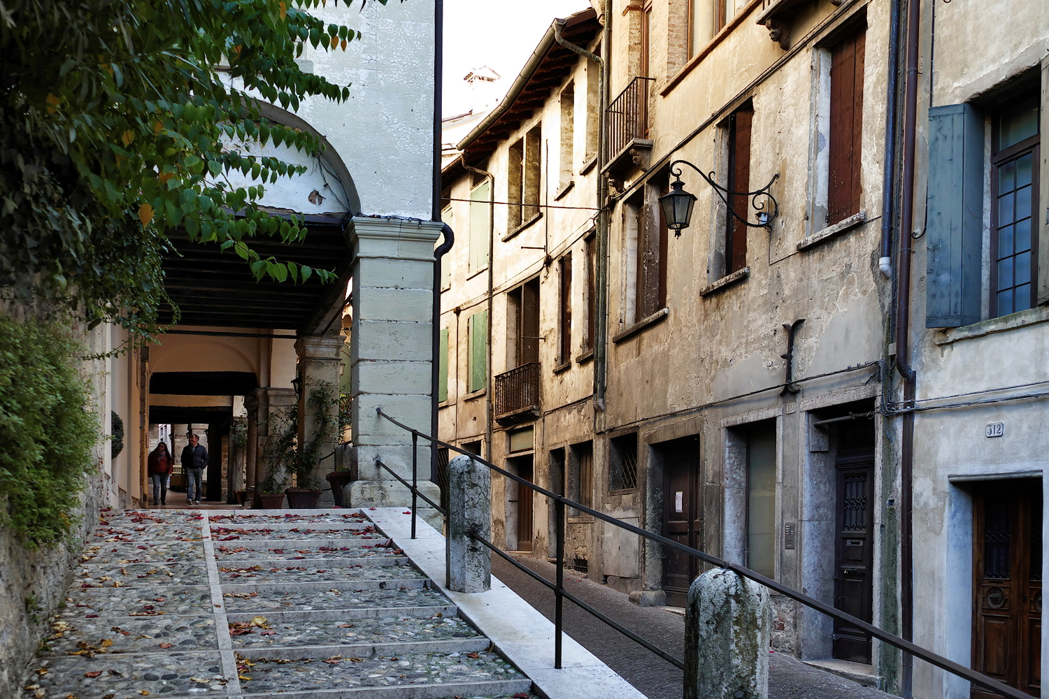 Inserito entro le antiche mura che scendono dalla Rocca, Asolo mostra la sua millenaria storia nell’impianto urbanistico ed edilizio intatto e nelle visuali che offre passeggiando.